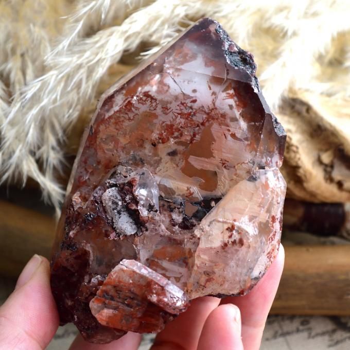 入荷したのは春先のミネショなんですが、秋色がとっても今の季節にお似合いで、ちょうどいいタイミングでリリースすることが出来ました。強そうな見た目通り、とても力強く血気盛んな水晶ですが、中は透明でファントムが出る程です。
