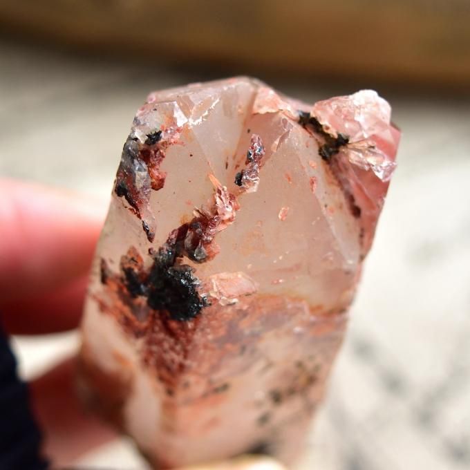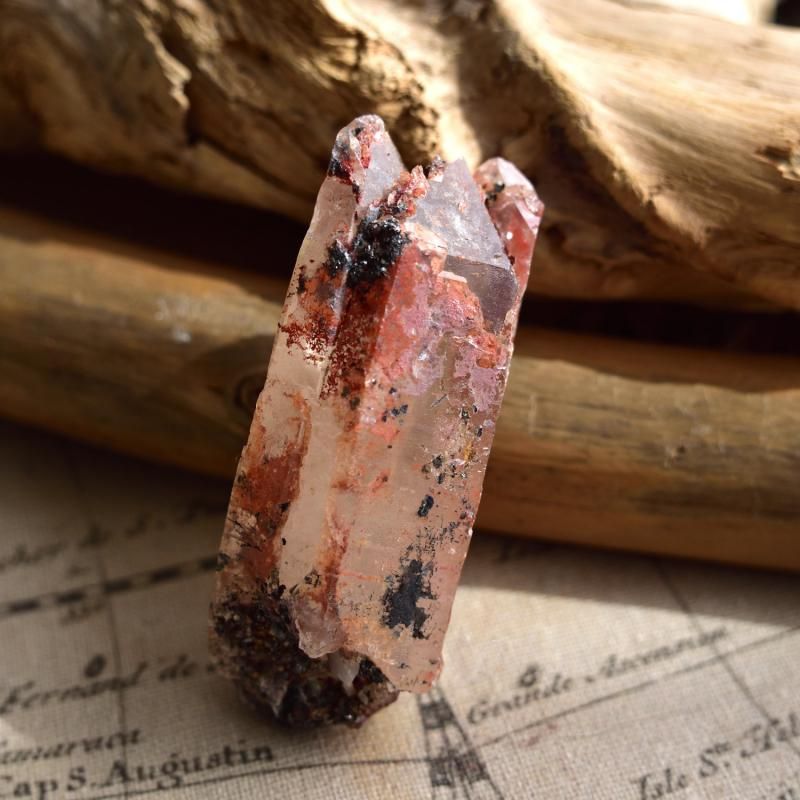 入荷したのは春先のミネショなんですが、秋色がとっても今の季節にお似合いで、ちょうどいいタイミングでリリースすることが出来ました。強そうな見た目通り、とても力強く血気盛んな水晶ですが、中は透明でファントムが出る程です。