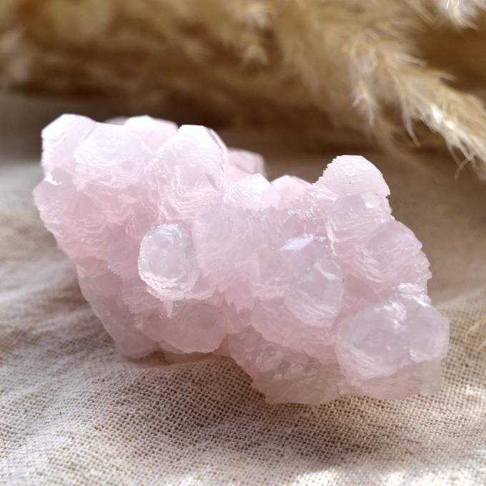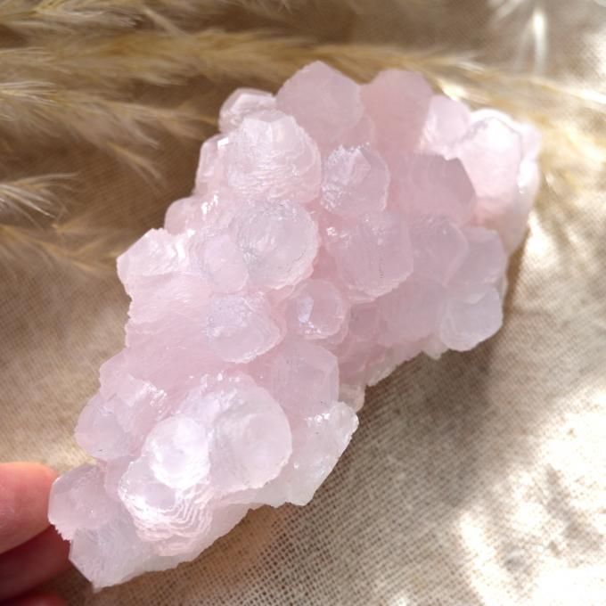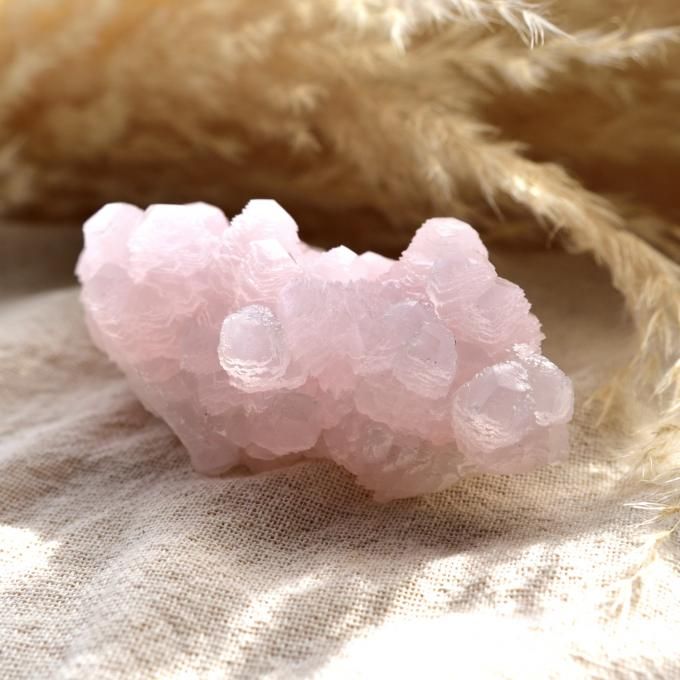 薄桃色のピンクカルサイトは、カルサイトの柔らかさとピンク色の慈愛のバイブレーションが緊張を解きほぐし、緩やかで穏やかな次元を開いてくれる気がします。