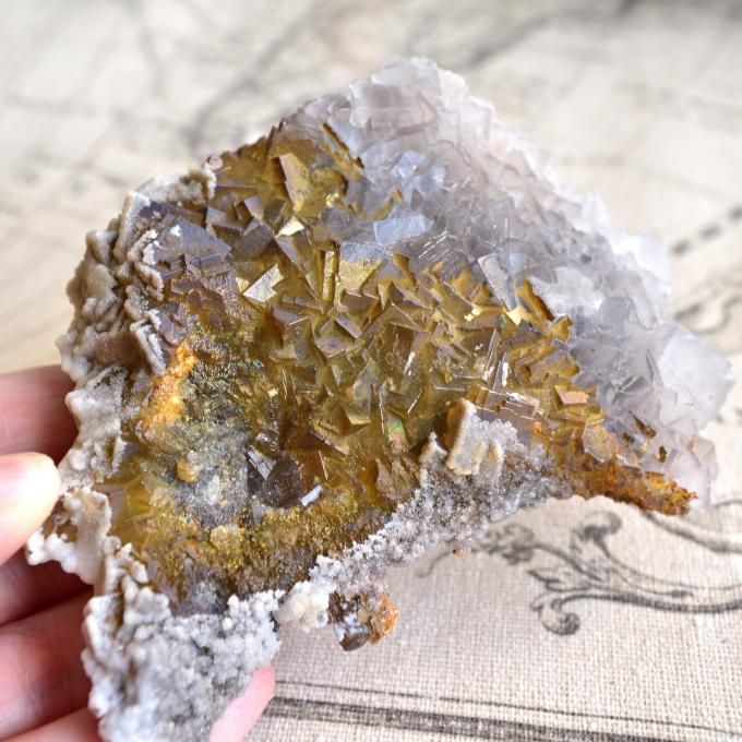 カルサイト共生なので、フローライトの母岩や周辺のカルサイト結晶も見どころがあって。