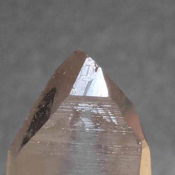 タビーなので変形ですが、真上から見ると三菱のマークになる三方晶系の女神水晶です