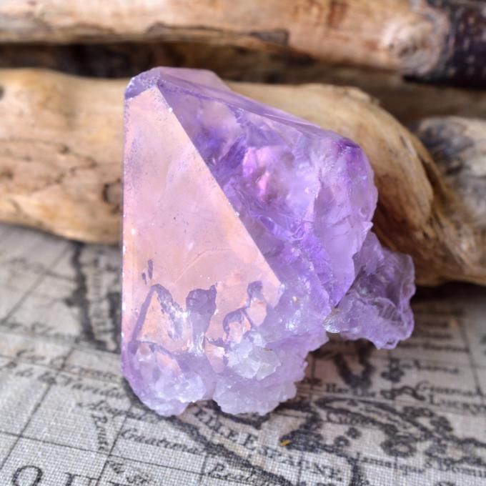 ヒマラヤのアイスクリスタルはニルヴァーナ・クォーツとも呼ばれていますが、それのさらにアメジストです。ニルヴァーナ・クォーツは取り扱ったことがないのですが、メル・クリスタルもアメジスト・アイスクリスタルも溶解からの再結晶で癒しの力が倍増しているのはよく似ていますね。
